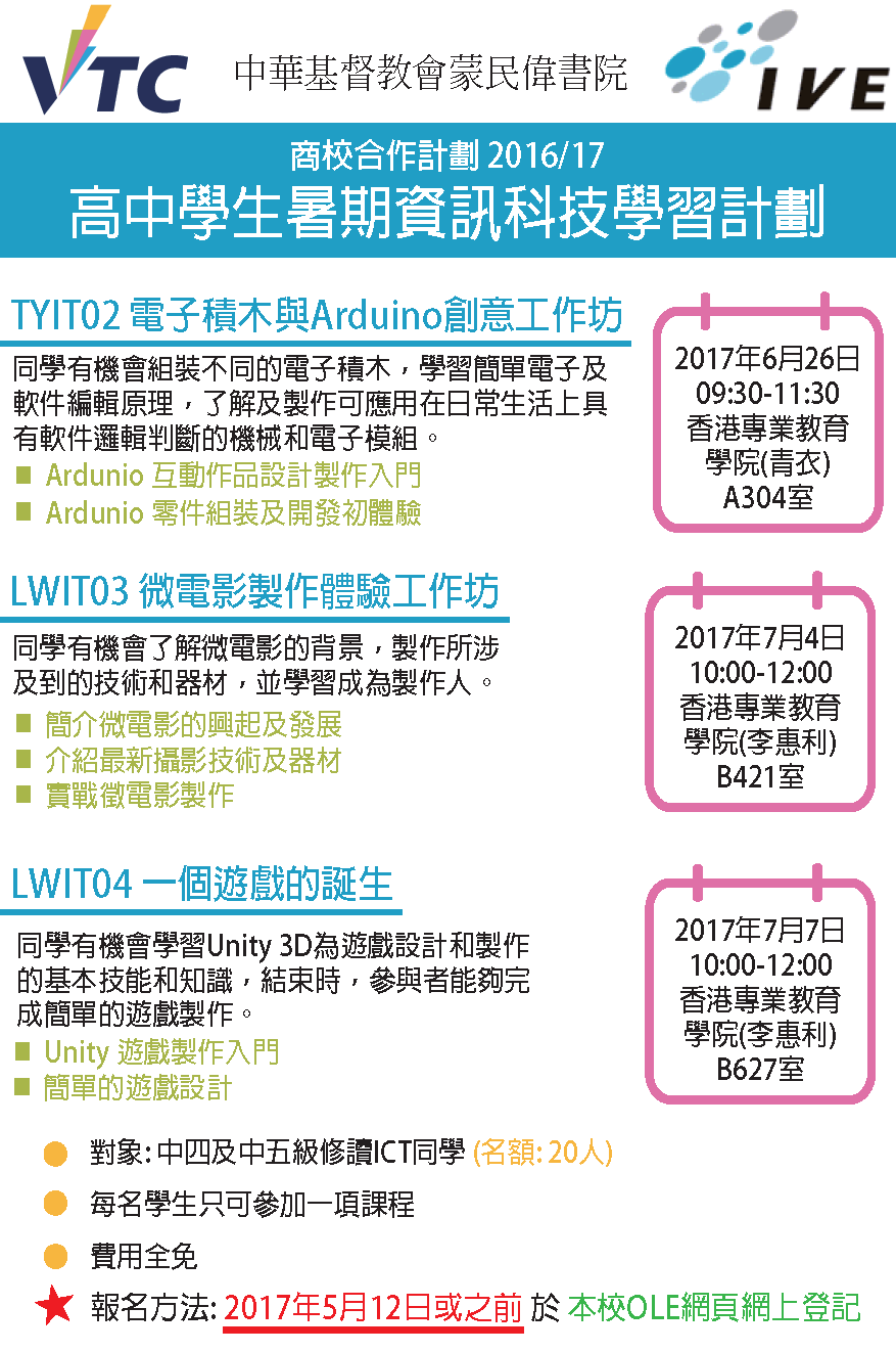 2017年6月26日 09:30-11:30 香港專業教育學院(青衣) A304 |