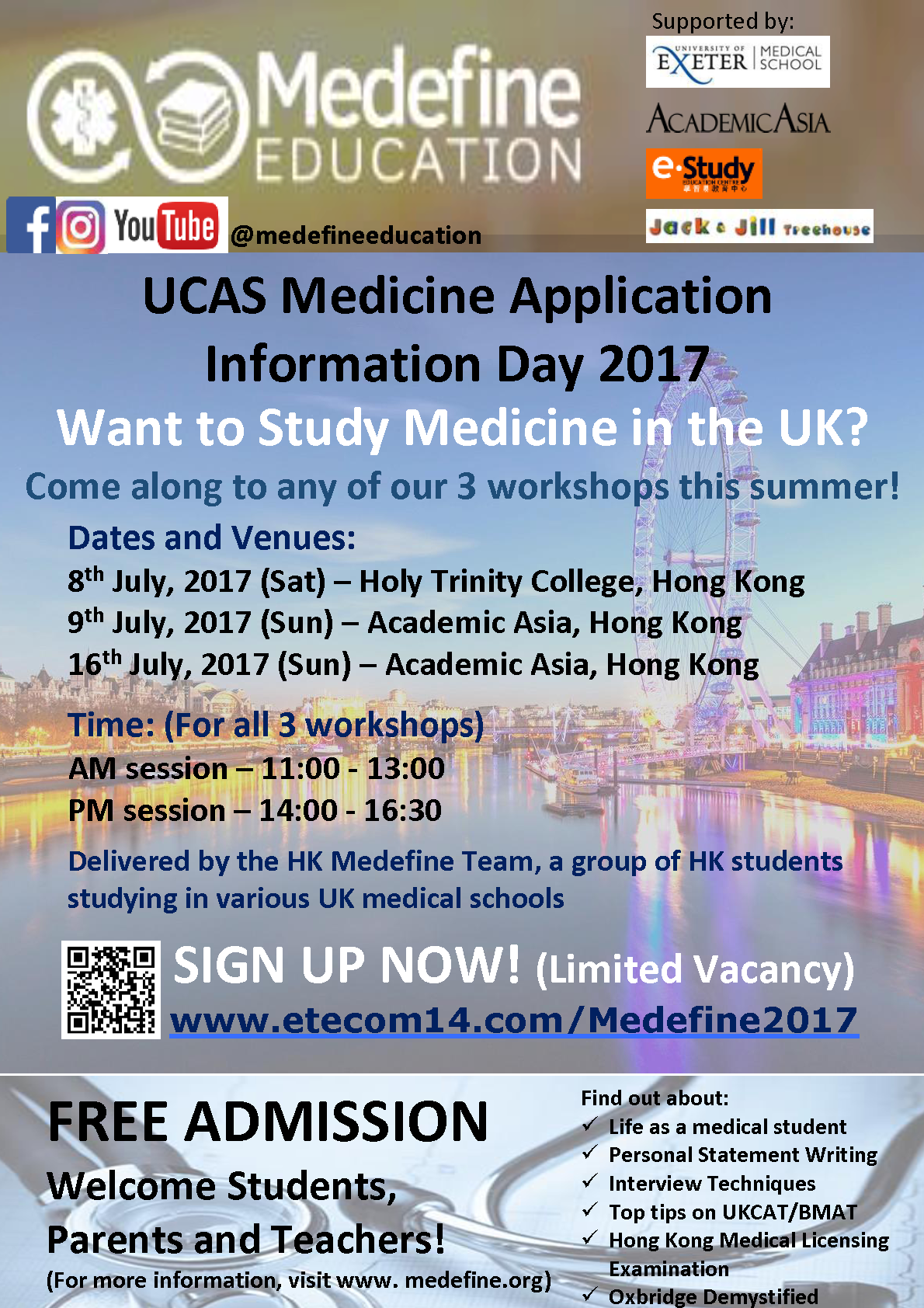 Are you a high school student panicking about how to get into Medicine? Are you a parent pondering on whether to send your child to study Medicine in the UK or not? Are you a teacher wondering how the UCAS medicine application actually works? If so, grasp the opportunity to resolve your concerns this coming July!