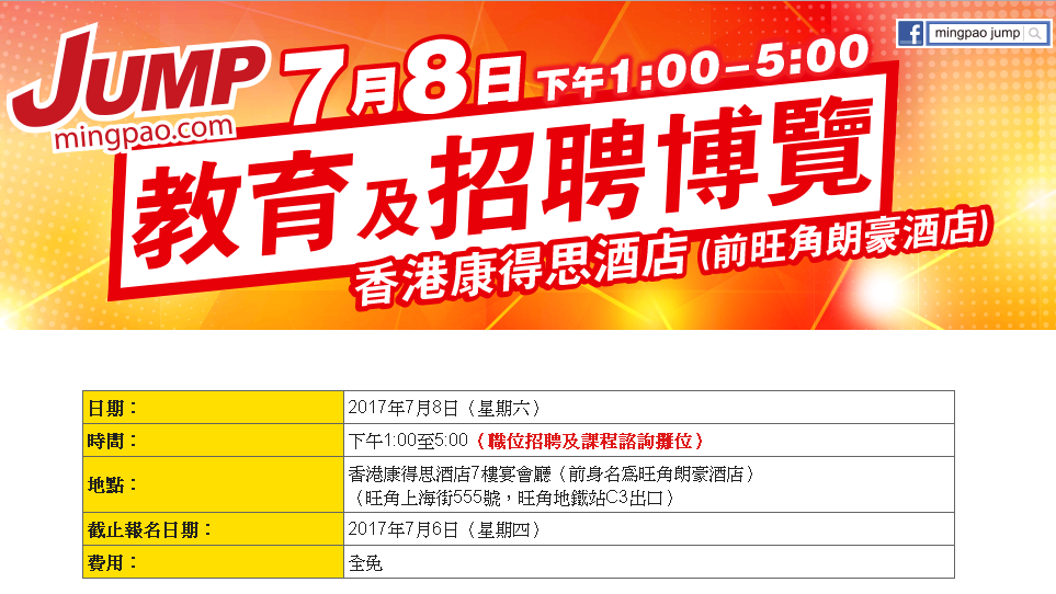 了解詳情: https://marketing.mingpao.com/htm/jobseminar/2017/htm/ (按此登記)