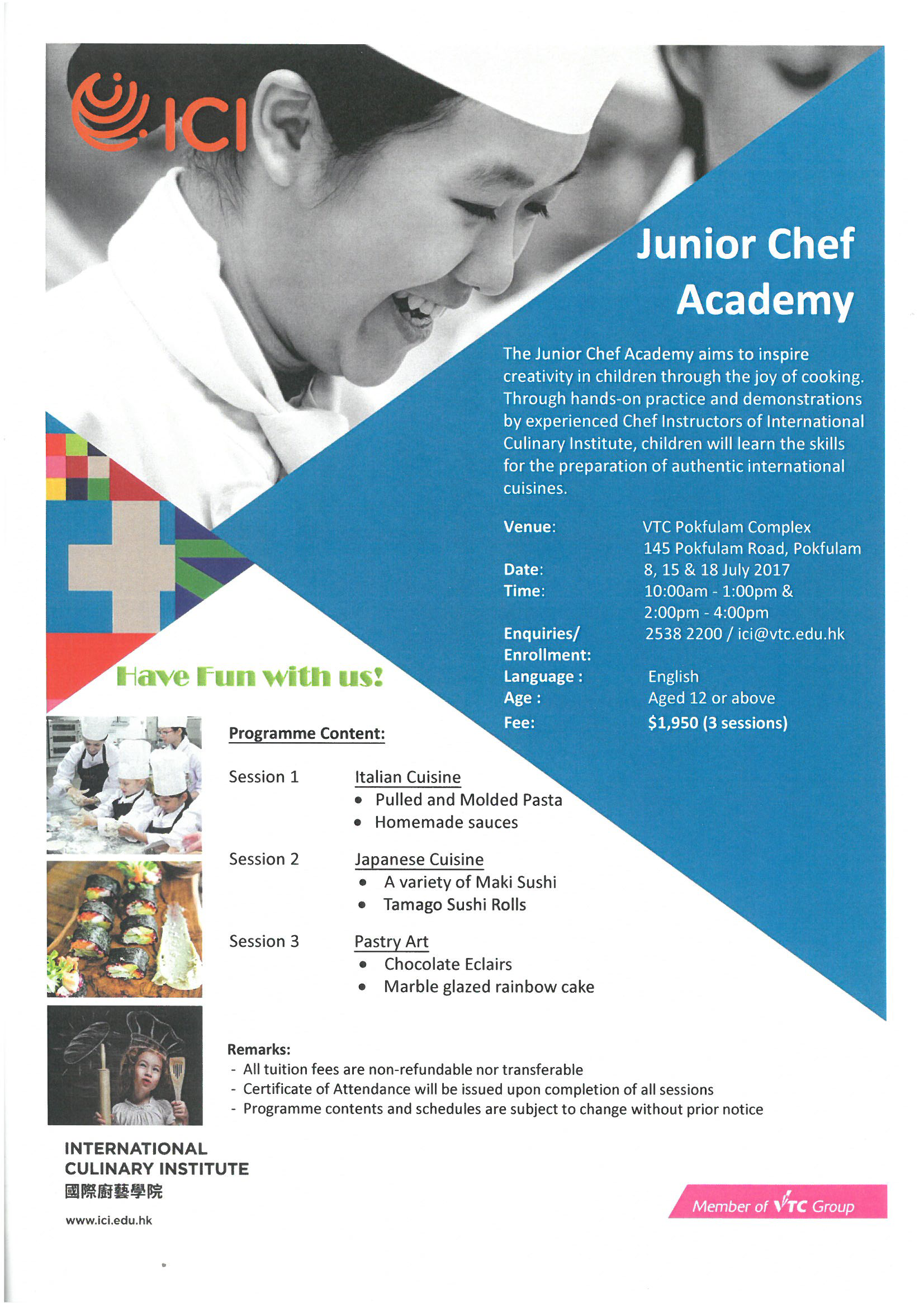 Enquiries/Enrollment: 2538 2200  / ict@vtc.edu.hk