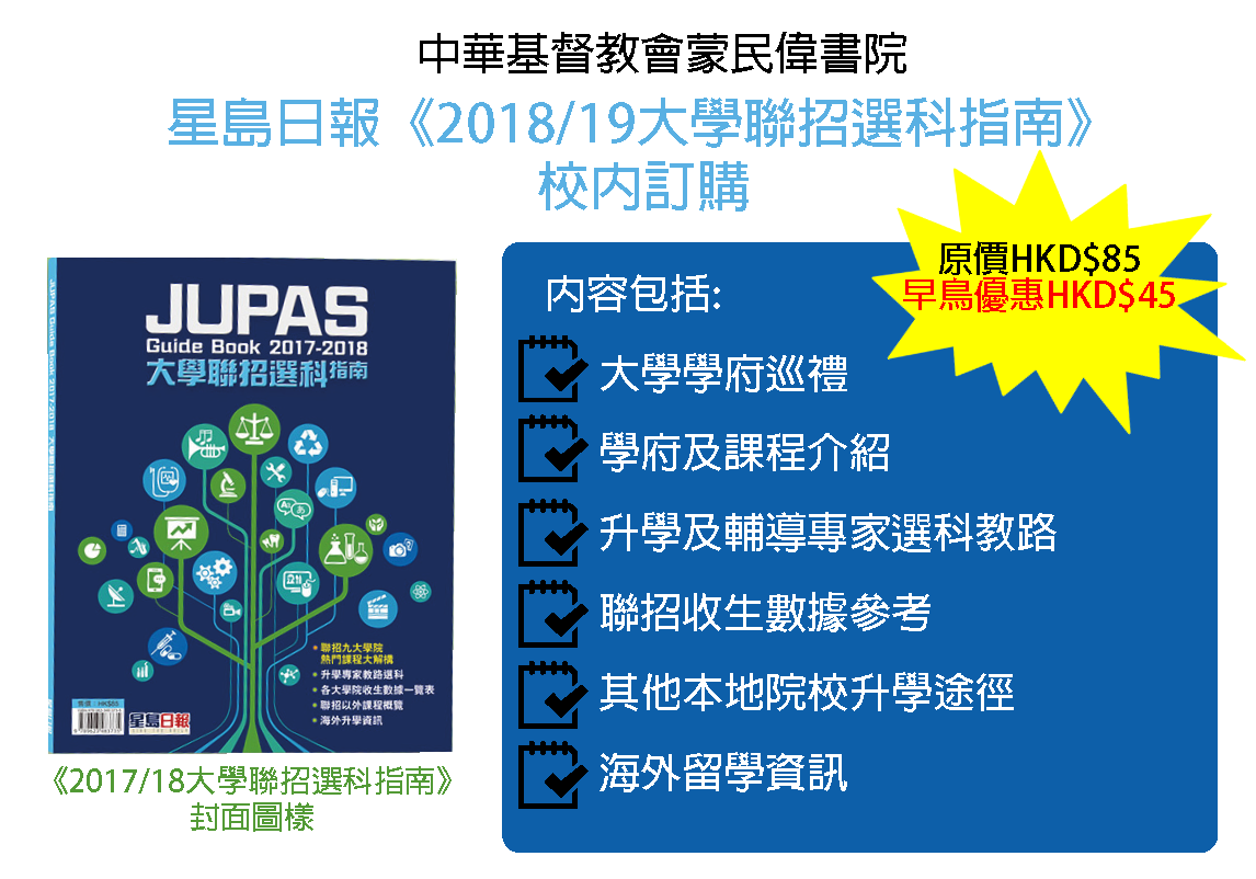**完成訂購登記的同學須於2017年9月26日(星期二)或之前向朱小姐繳交HKD$45訂書費用。**