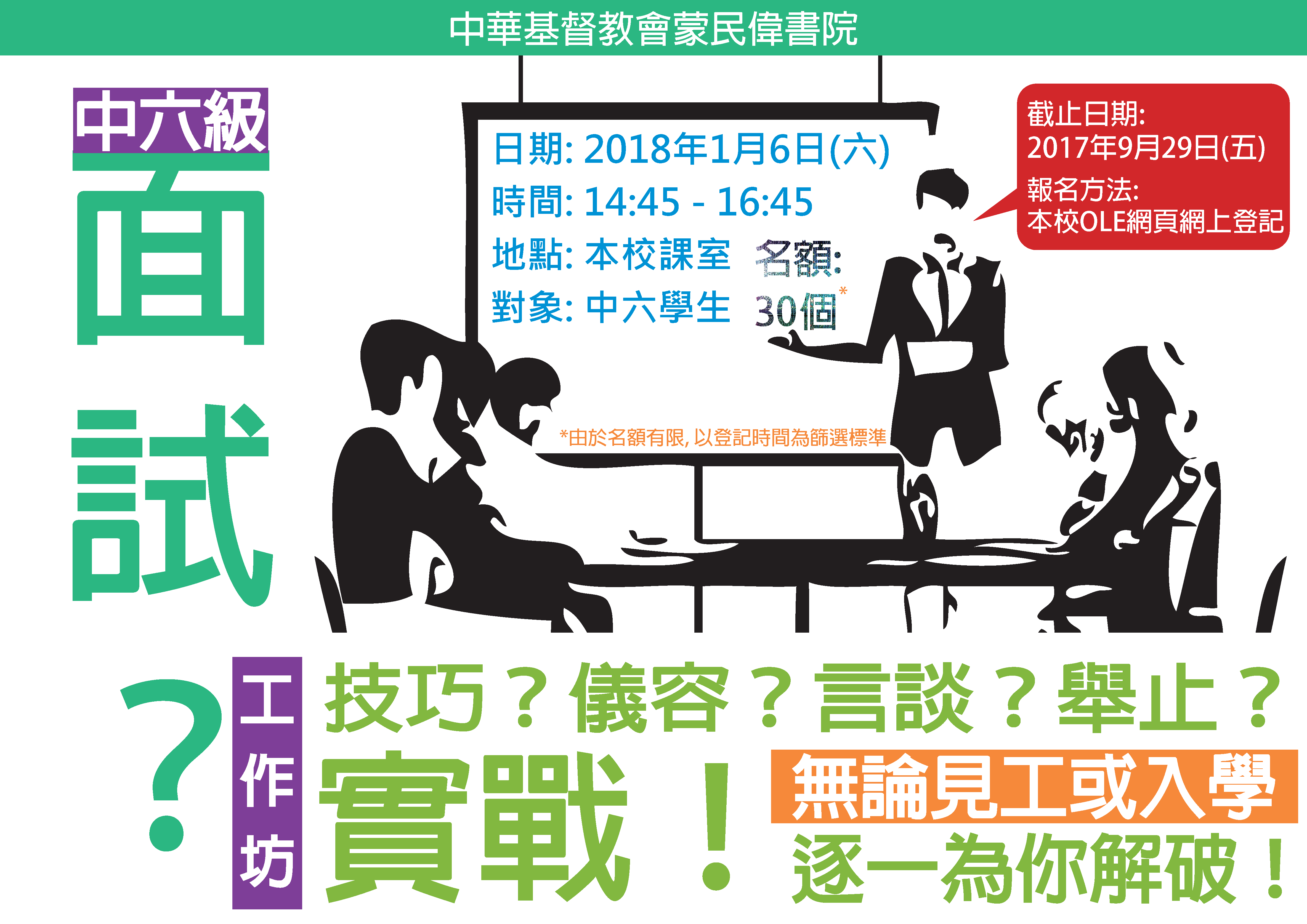 - 教導學生適當的面試宜忌,包括儀容、妝扮、態度及問答技巧