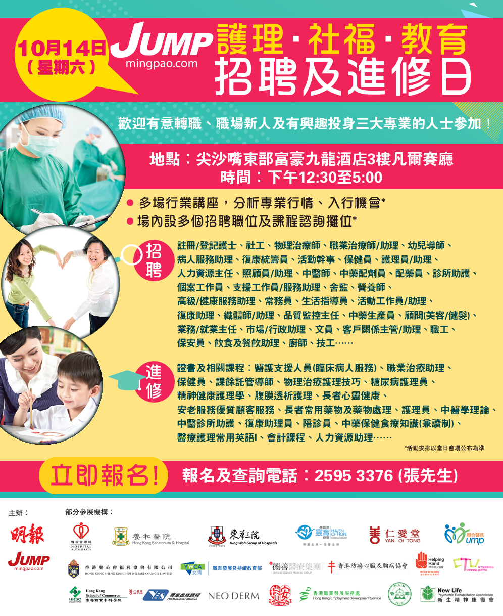 | 時間: | 中午12:30 – 下午5:00(招聘職位及課程諮詢攤位) |