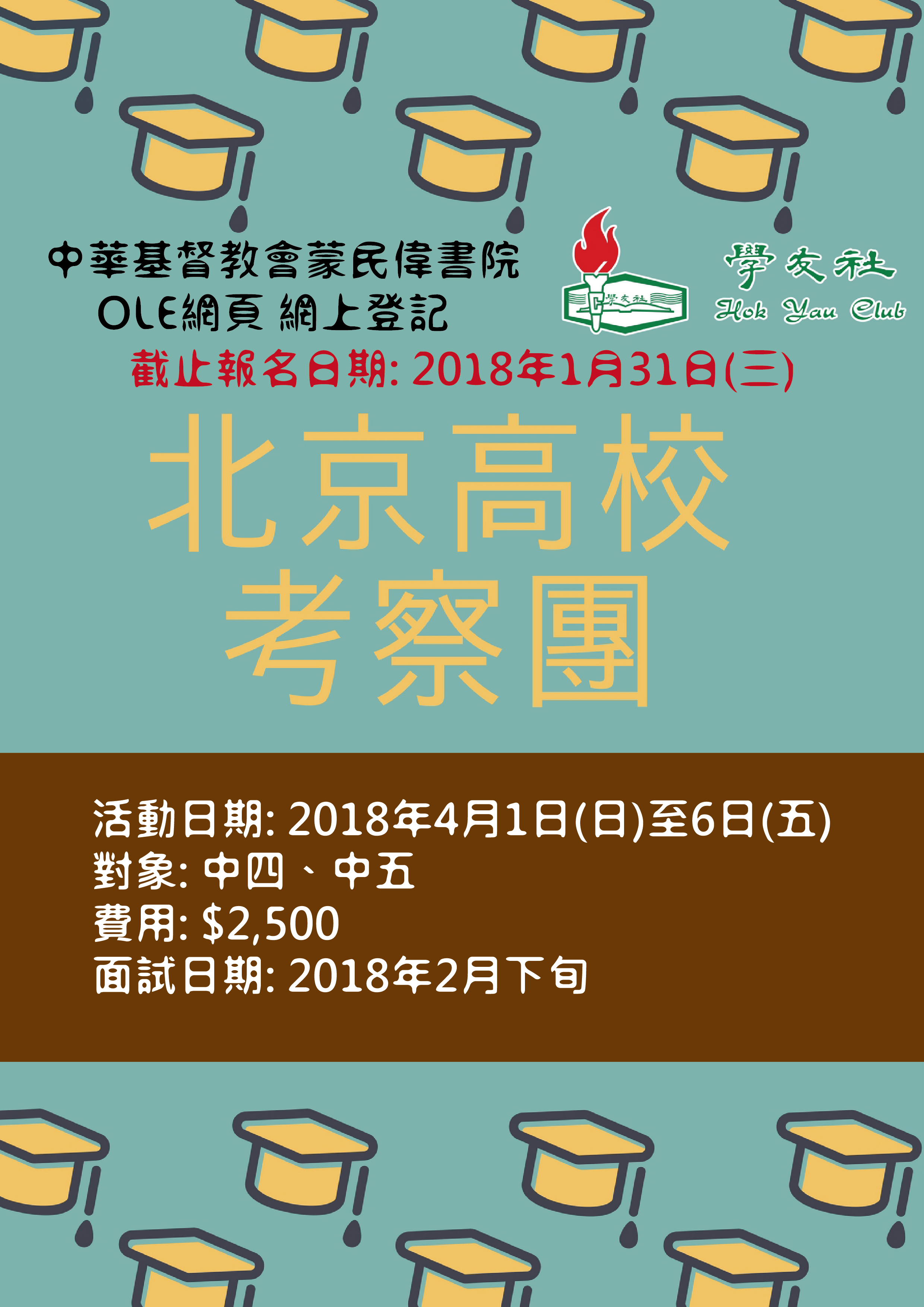 註:所有參加者均可獲安排面試;面試以小組形式進行,以了解參加期望,並就國情認知作出甄選。