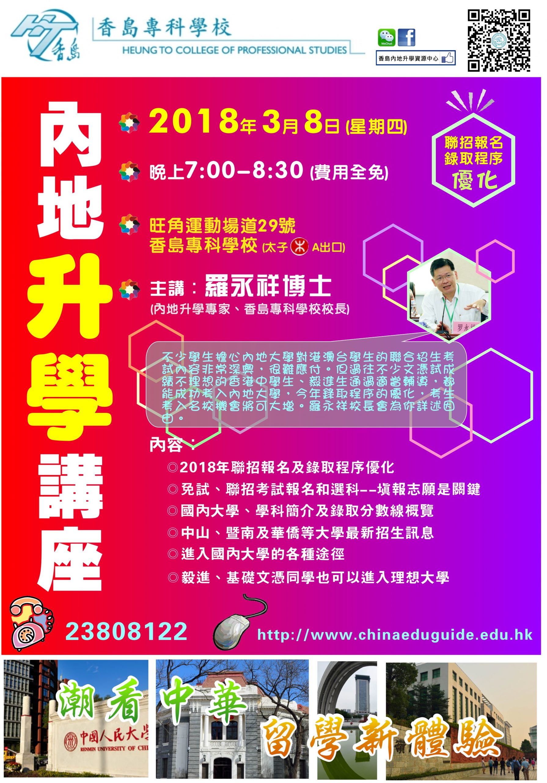 講者: 羅永祥博士 (內地升學專家、香島專科學校校長)