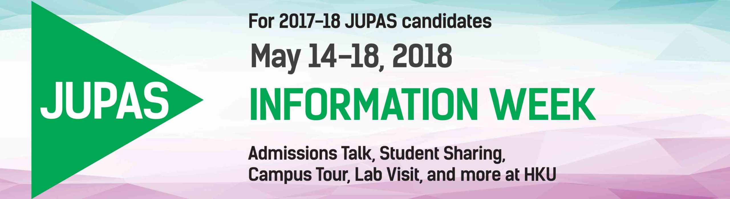 On May 14 – 18, JUPAS Information Week targeting 2017-18 JUPAS candidates will be held at HKU campus.
