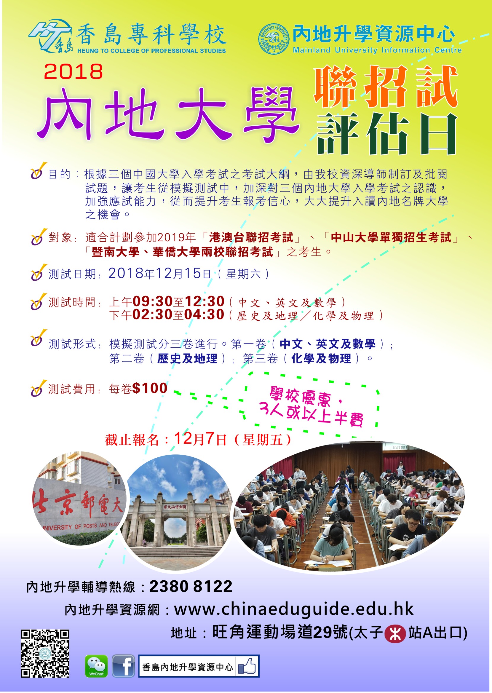 對象﹕適合計劃參加2019年「港澳台聯招考試」、「中山大學單獨招生考試」、「暨南大學、華僑大學兩校聯招考試」之考生。