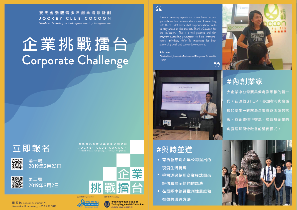 STEP Four – 企業挑戰擂台即將於2019年2月23日及3月2日舉行。機構很榮幸邀請到*IKEA 宜家家居*和*恒基兆業地產有限公司*參加企業挑戰擂台!學生可與其他學校的同學一起解決企業真實面臨的挑戰,與企業進行交流,並置身企業的角度理解現今社會的營商模式。當日表現優秀的學生更有機會到訪企業,進行更深的交流,機會難得。