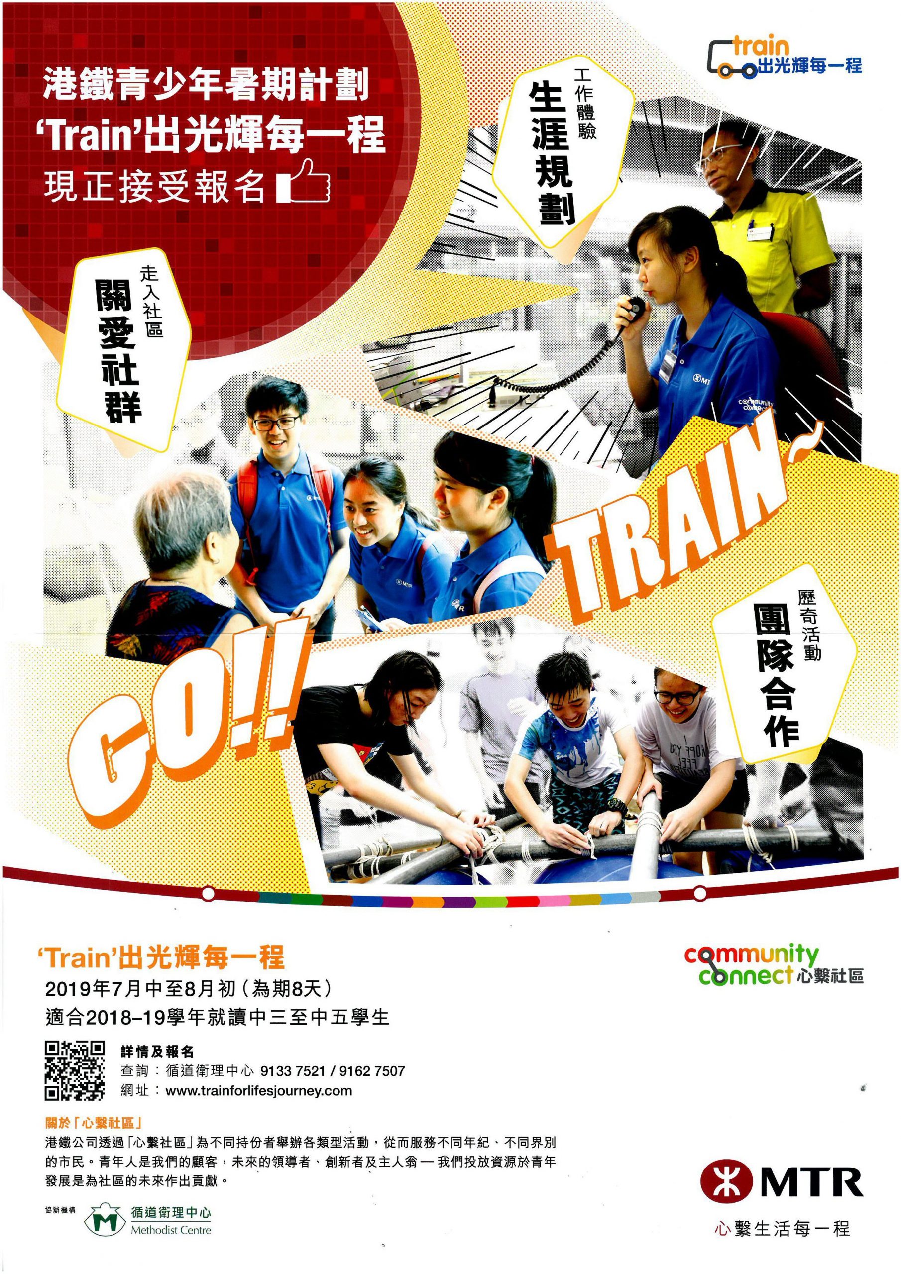 這個與循道衛理中心合辦的八天計劃活動包括工作坊、學習體驗營和港鐵實習,為學生提供拓闊視野的機會;亦包含生涯規劃和港鐵師友元素,同時讓學生提升人際溝通的技巧和創意思維。