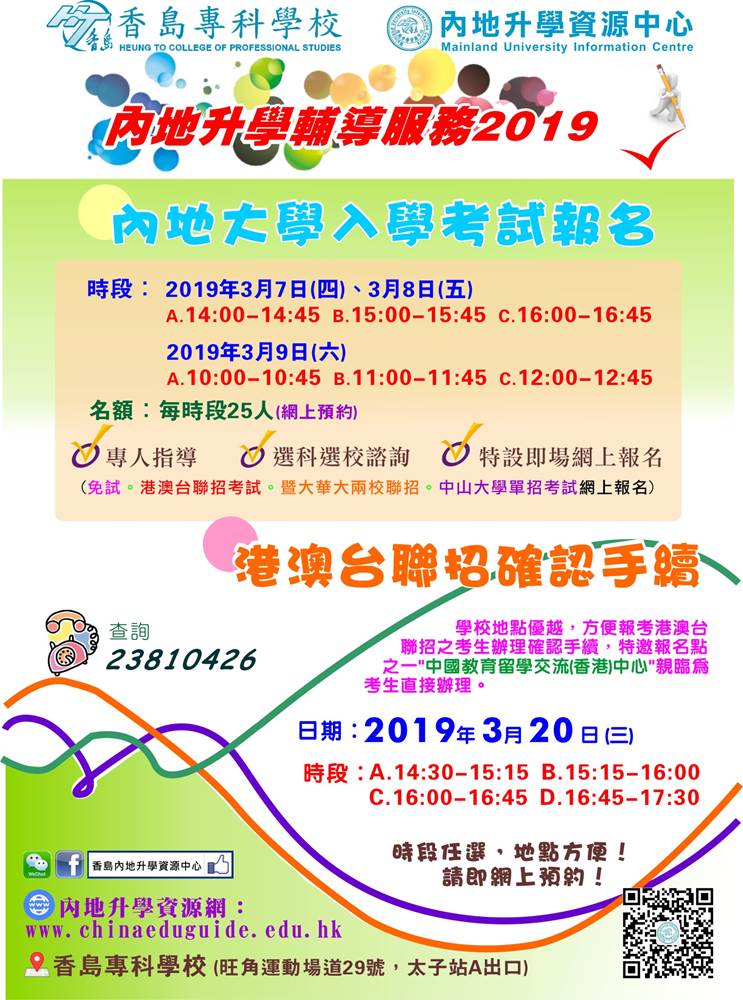 2019年3月20日舉 辦港澳台聯招報名【確認服務】