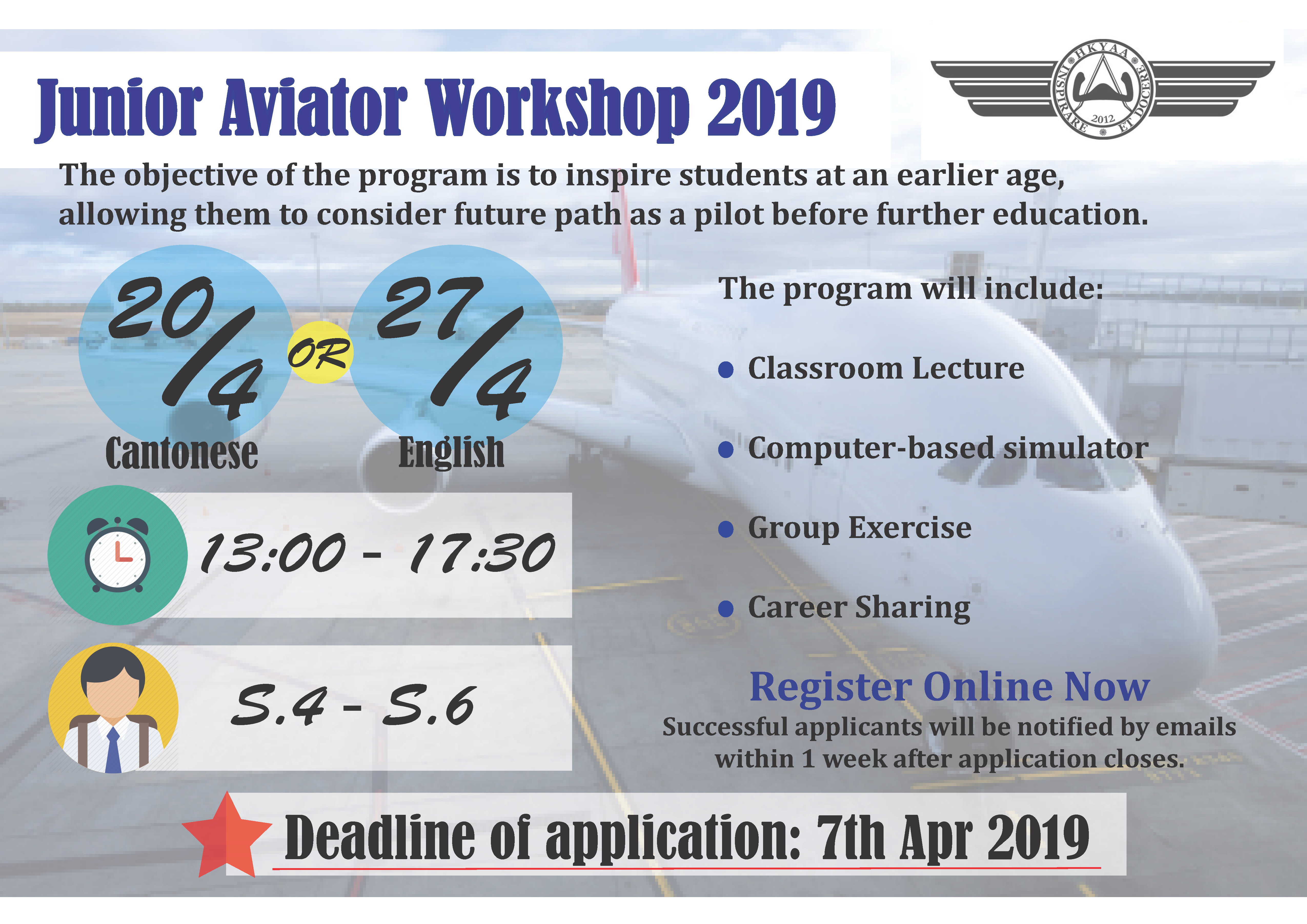 Register online via https://www.cognitoforms.com/HKYAA1/JuniorAviatorWorkshop?entry=%7B%22A%22:%7B%22L%22:%22EB%22%7D%7D