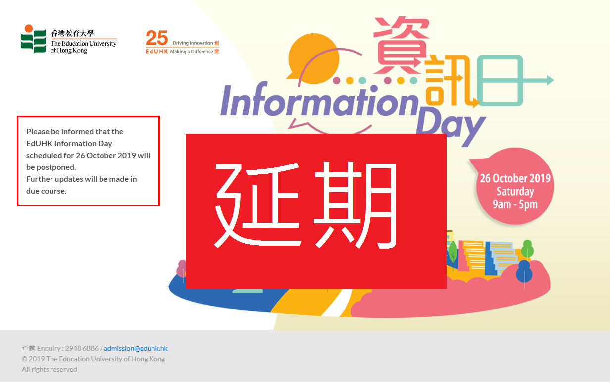 官方網站:https://www.eduhk.hk/acadprog/infoday/
