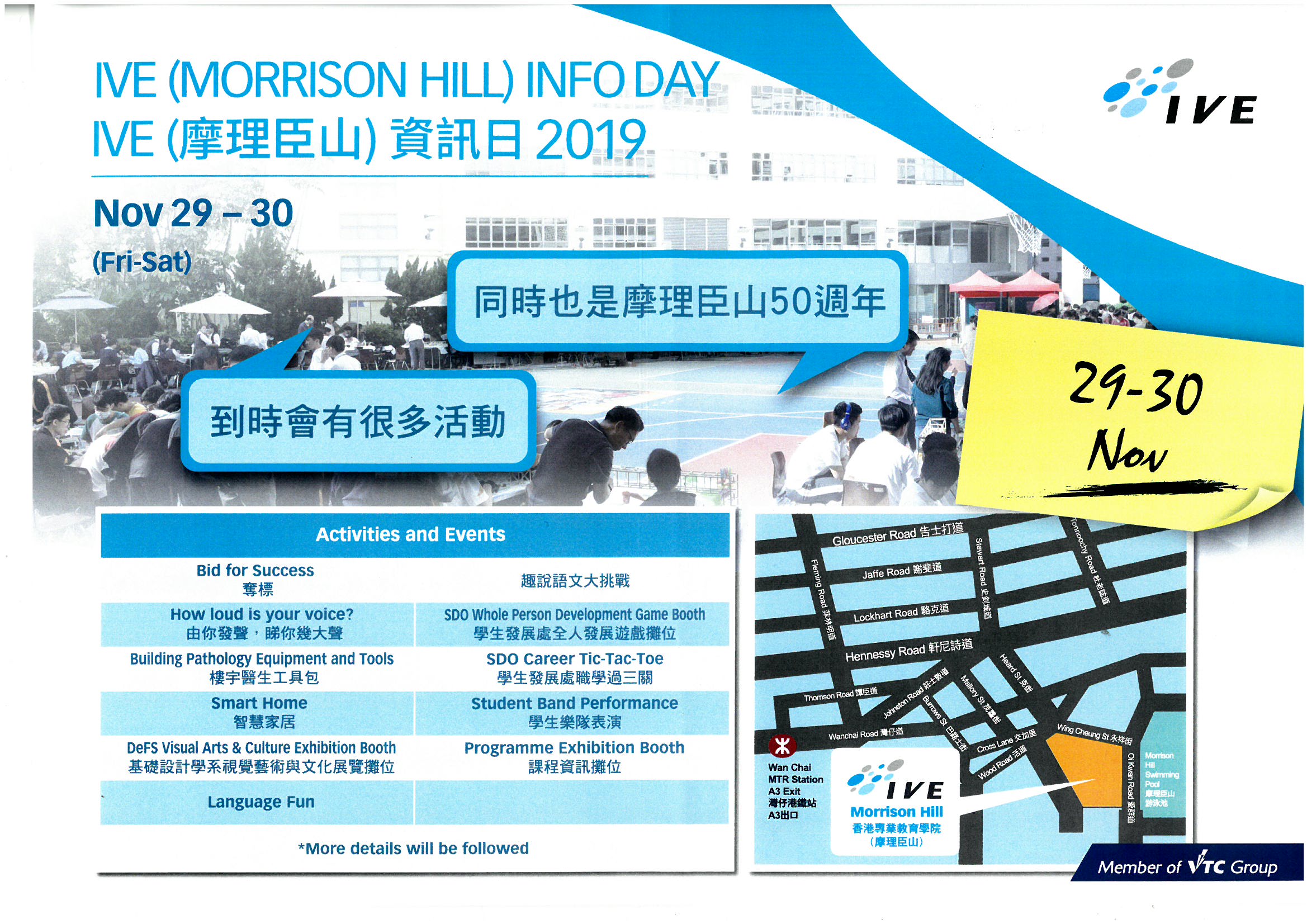 Home » Past Events 過往活動 » IVE (Morrison Hill) Info Day IVE(摩理臣山)資訊日 2019