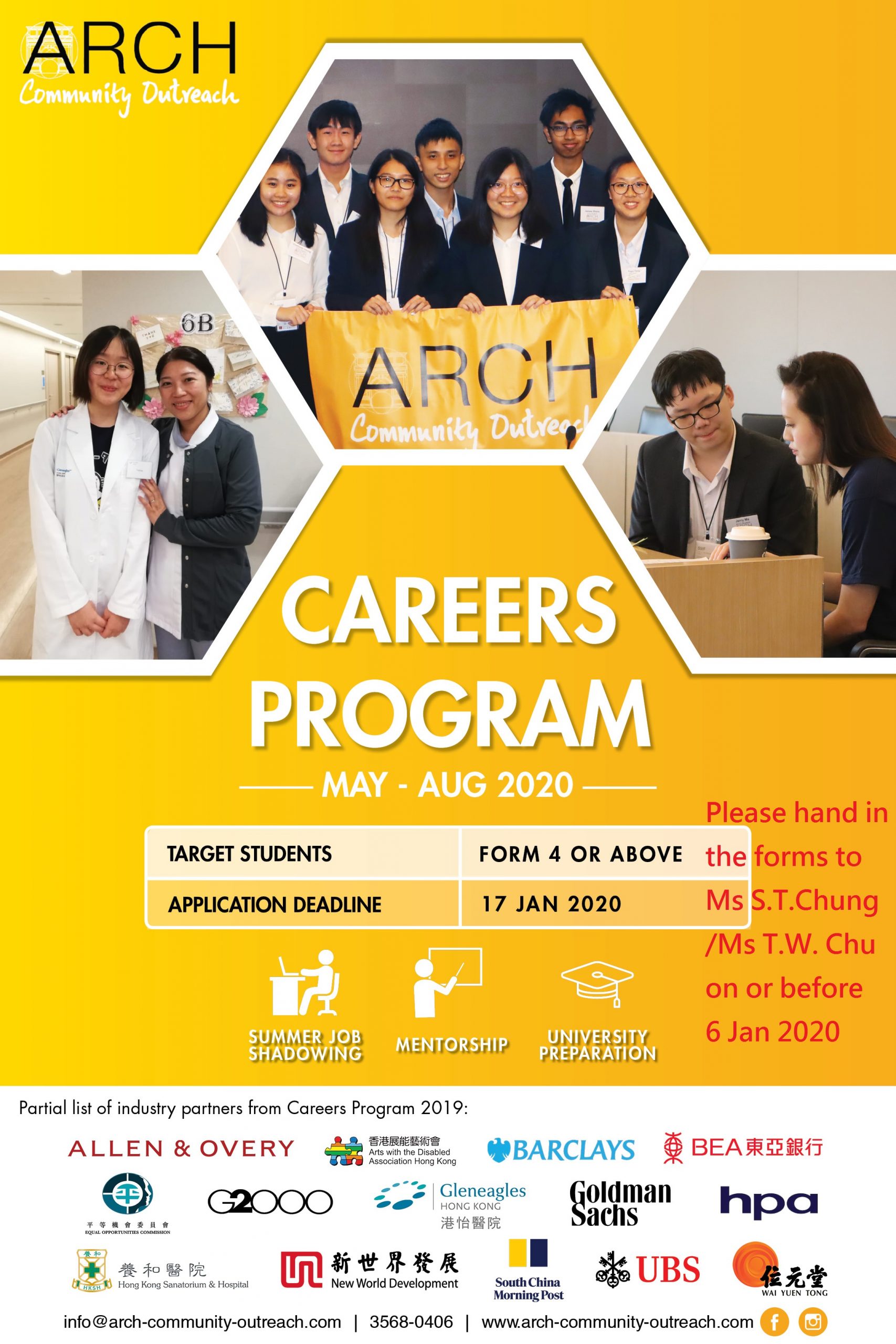 Students who are interested in joining the program, please submit the THREE forms below to Miss Chung Shuk Ting / Miss Cynthia Chu on or before 6 Jan 2020.