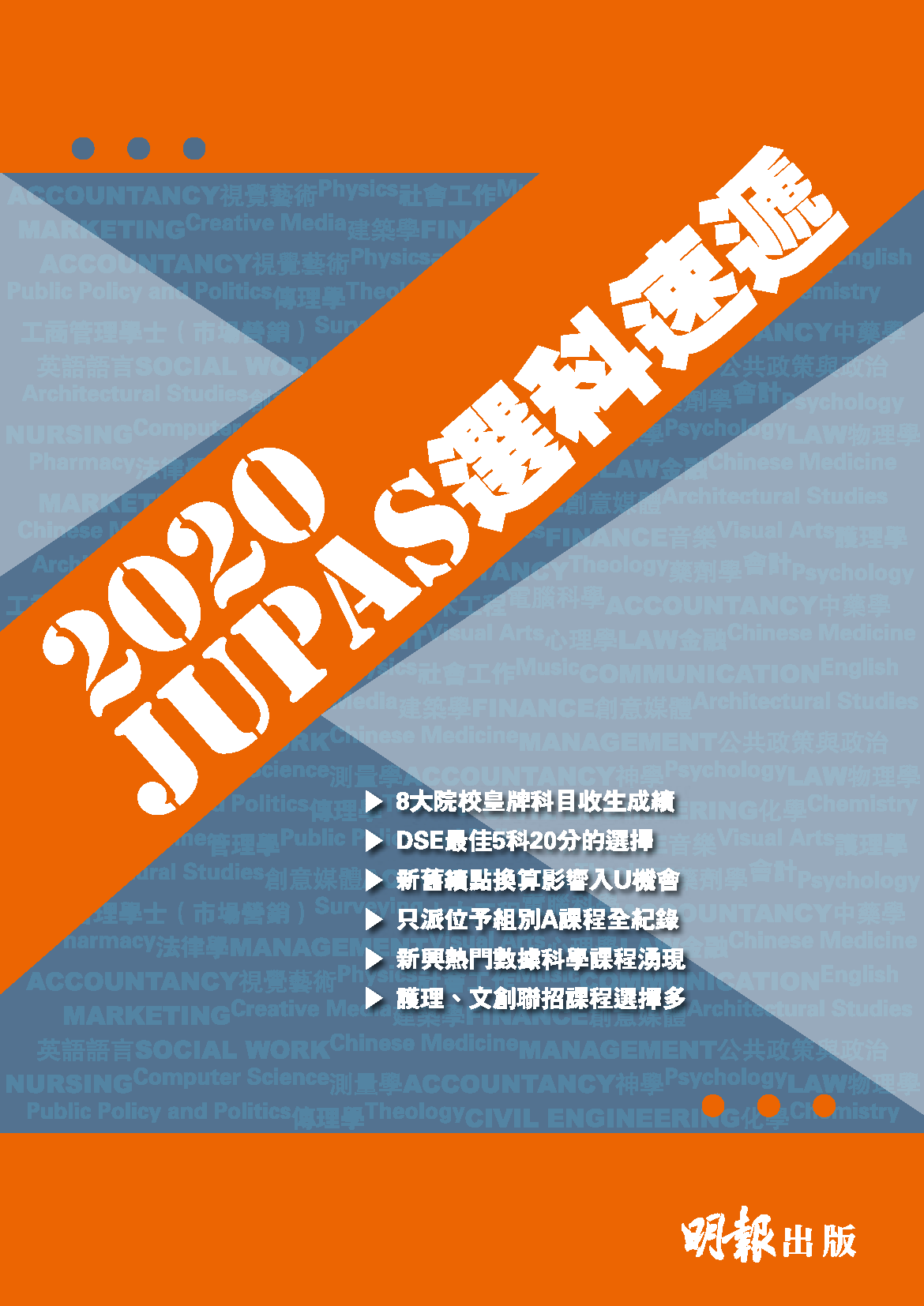 《2020 JUPAS 選科速遞》特刊 報名期限: 2020-02-03 >>立即瀏覽網上資源<< 8大院校皇牌科目收生成積 DSE最佳5科20分的選擇 新舊績點換算影響入U機會 只派位予組別A課程全紀錄 新興熱門數據科學課程湧現 護理、文創聯招課程選擇多