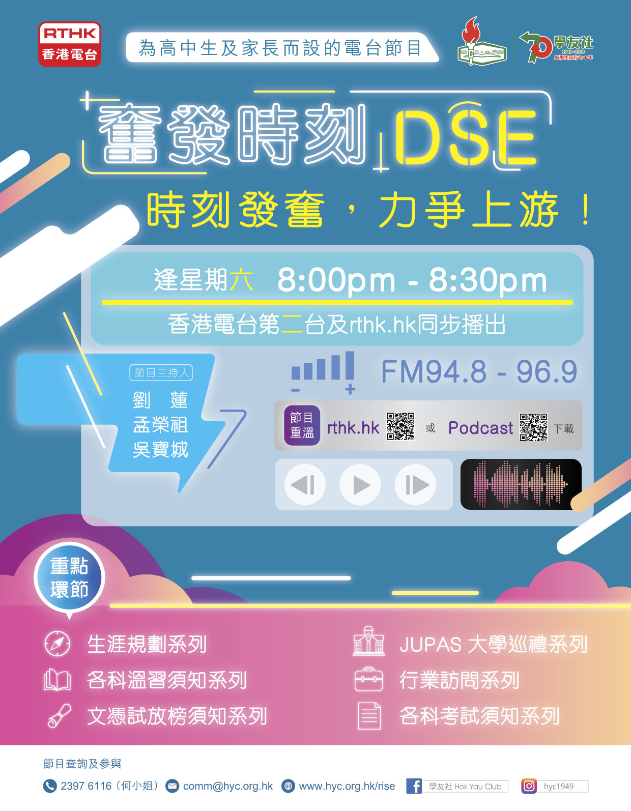 | 各科溫習須知系列、各科考試須知系列、生涯規劃系列、JUPAS 大學巡禮系列、文憑試放榜須知系列、行業訪問系列 |