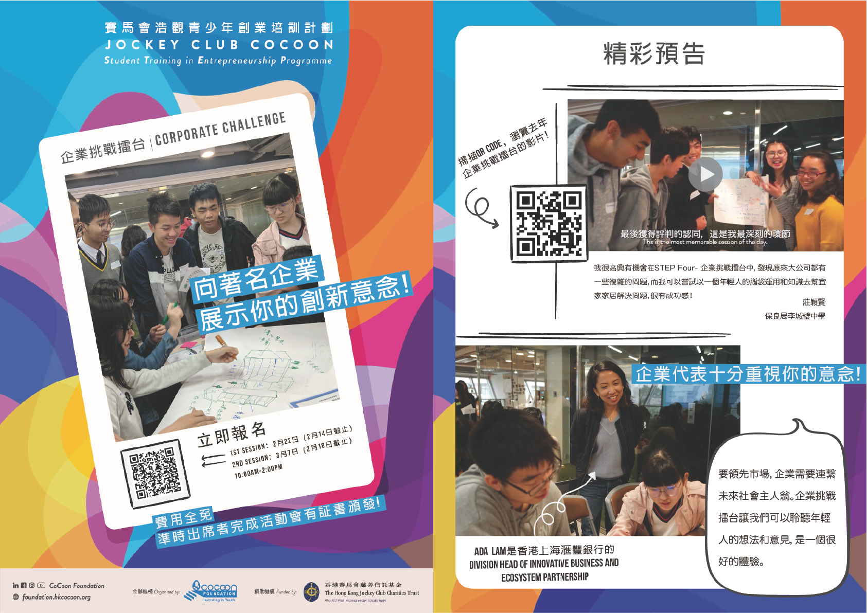 大企業中也需要具備創業思維的新一代,在這個STEP,參加者可與各院校的學生一起解決企業真正面臨的挑戰,與企業進行交流,並置身企業的角度理解現今社會的營商模式。