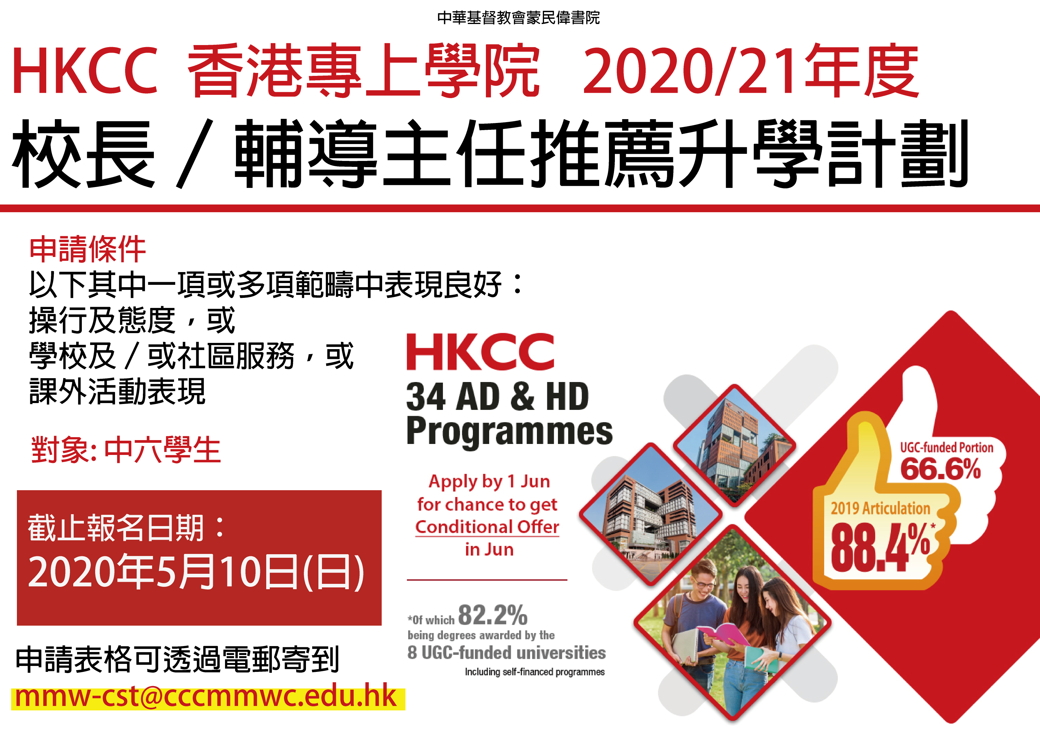 | HKCC Principal’s / Career Master’s Recommendation for Admission Scheme 2020/21香港專上學院