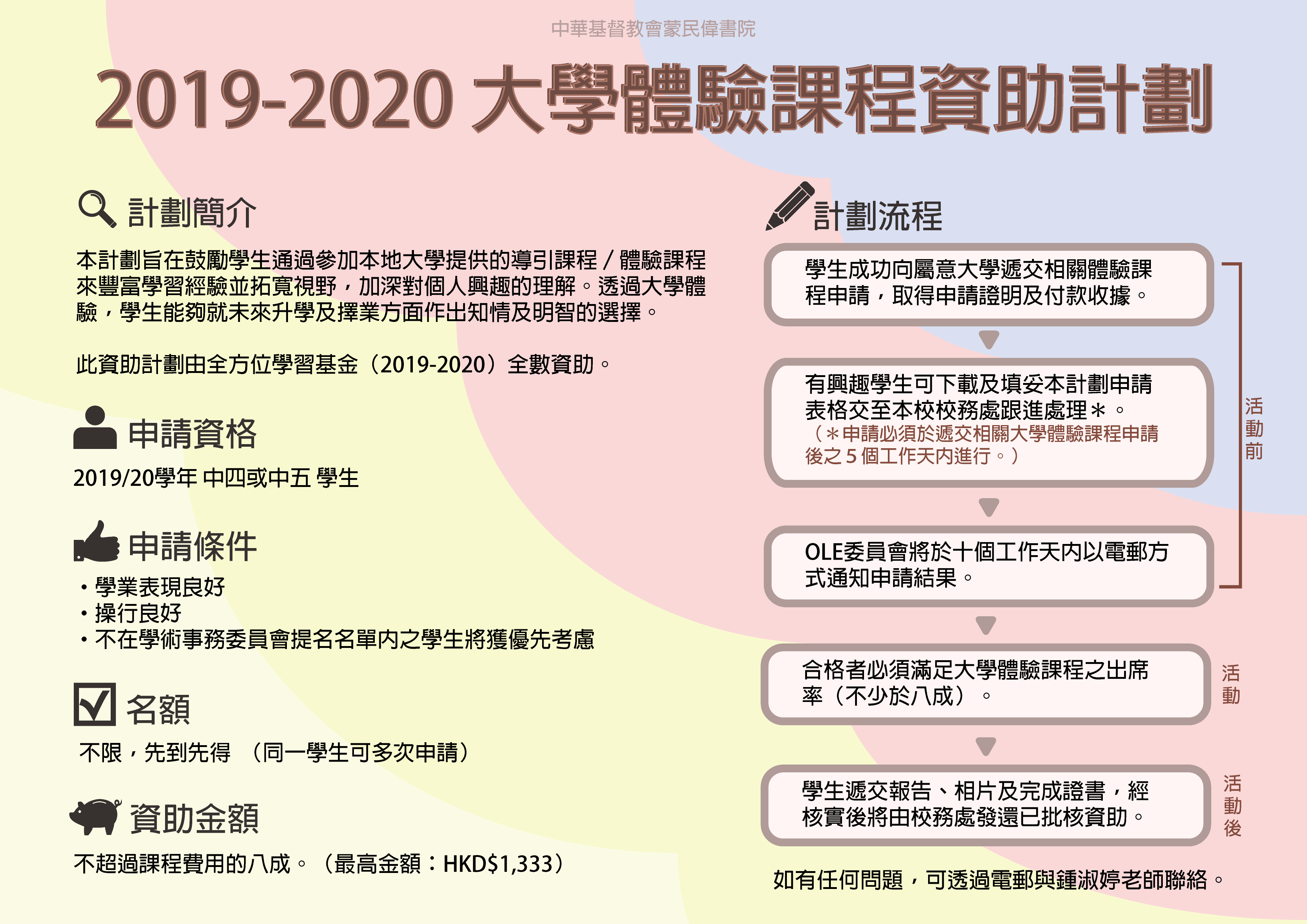 6.3           成功獲資助者有機會獲邀請參與推廣計劃之活動,如學習經歷分享等。