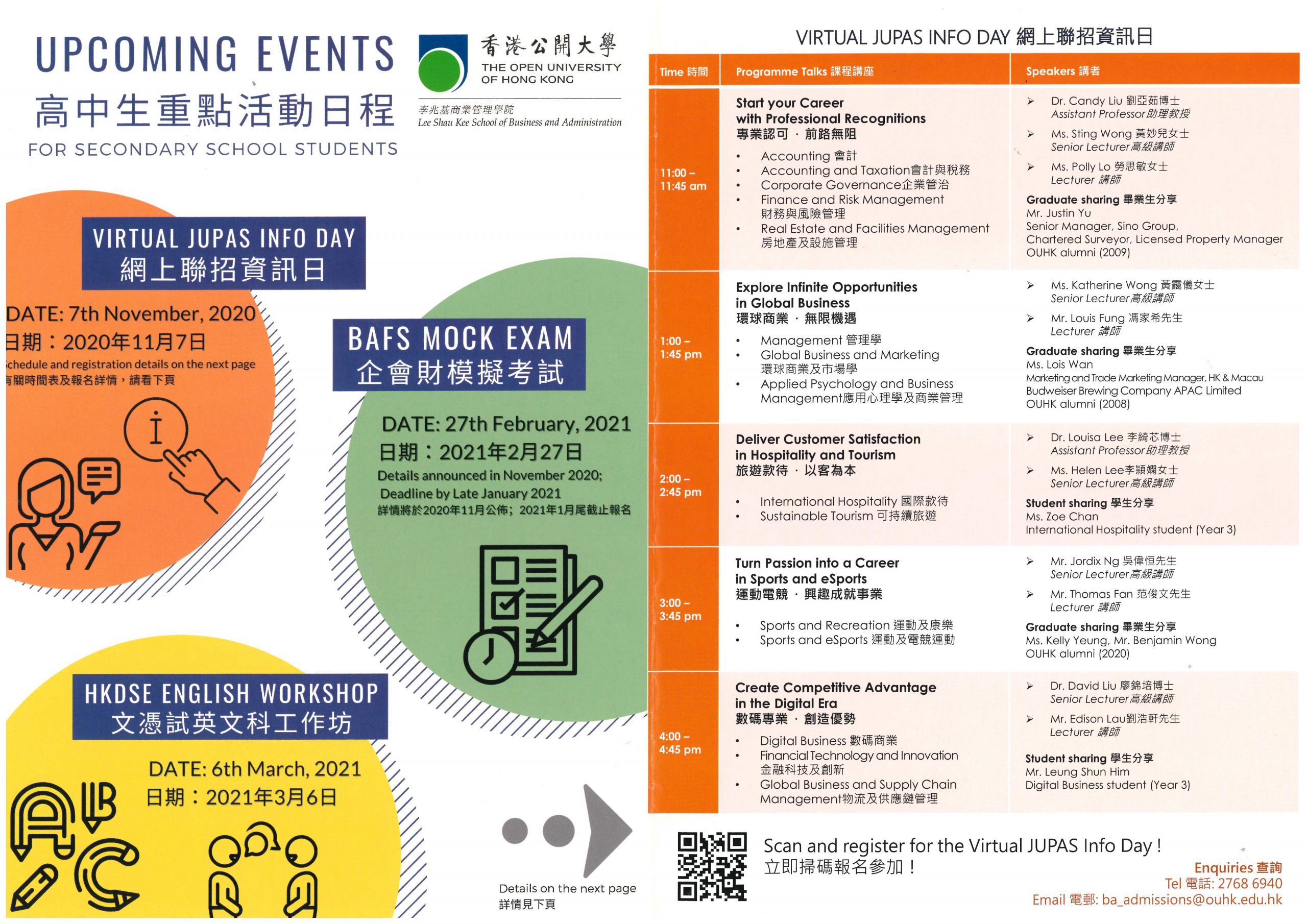 Registration for JUPAS InfoDay (B&A) – 7th Nov 2020