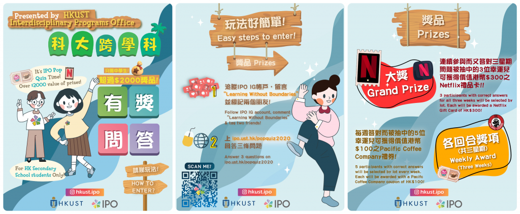 Weekly Quiz about IPO Programs will be posted on ipo.ust.hk/popquiz2020 for 3 consecutive Fridays starting from 20 November 2020. Participating students will have chance to win weekly and grand prizes. Details please refer to the attached poster and the event webpage: ipo.ust.hk/popquiz2020.