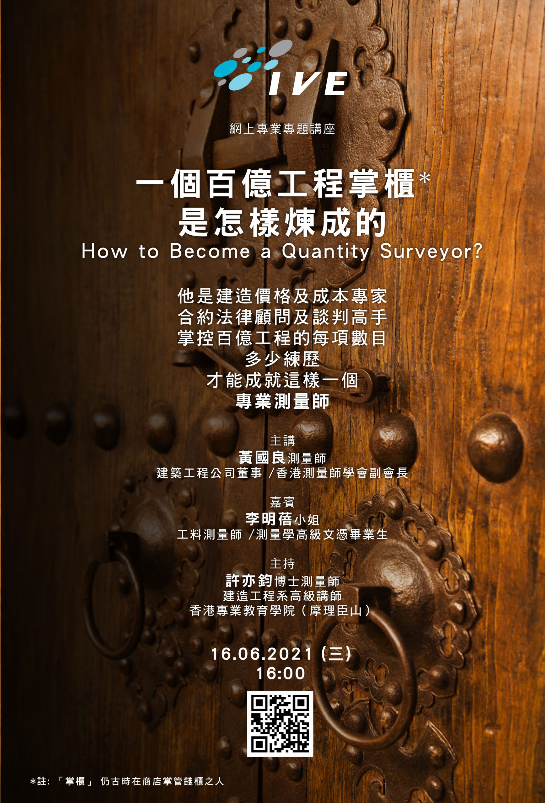 IVE專業專題網上講座:一個百億工程掌櫃是怎麼煉成的(測量師)