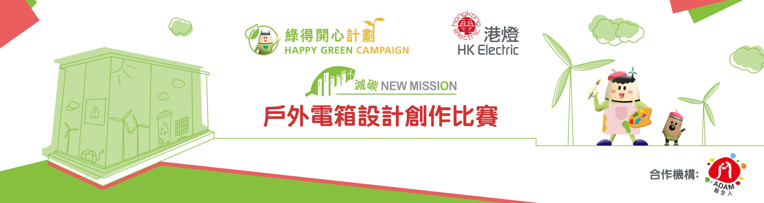 「綠得開心計劃」誠邀大家參與「減碳New Mission」戶外電箱設計創作比賽,發揮創意,演繹心目中智慧城市的減碳願景或承諾的減碳行動。得獎作品將由香港展能藝術會轄下社企藝全人的藝術家進一步製作,有機會展示於港燈的戶外變壓器配電箱(*),讓它們化身成美麗又宣揚環保的公共藝術品,提醒公衆人士同心減碳。