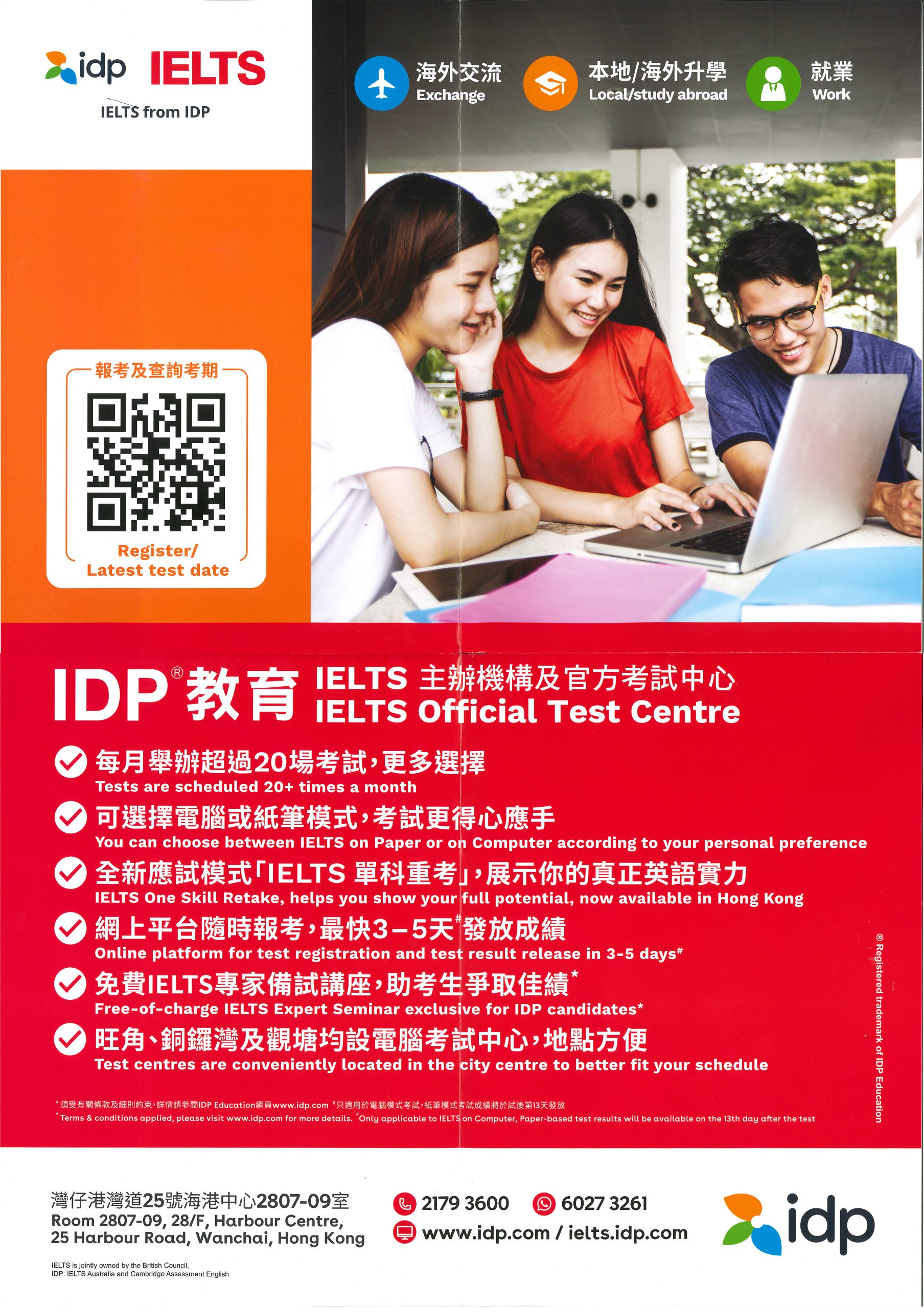 想查詢更多IELTS 詳情,可掃瞄海報QR code 或 前往IELTS網頁。