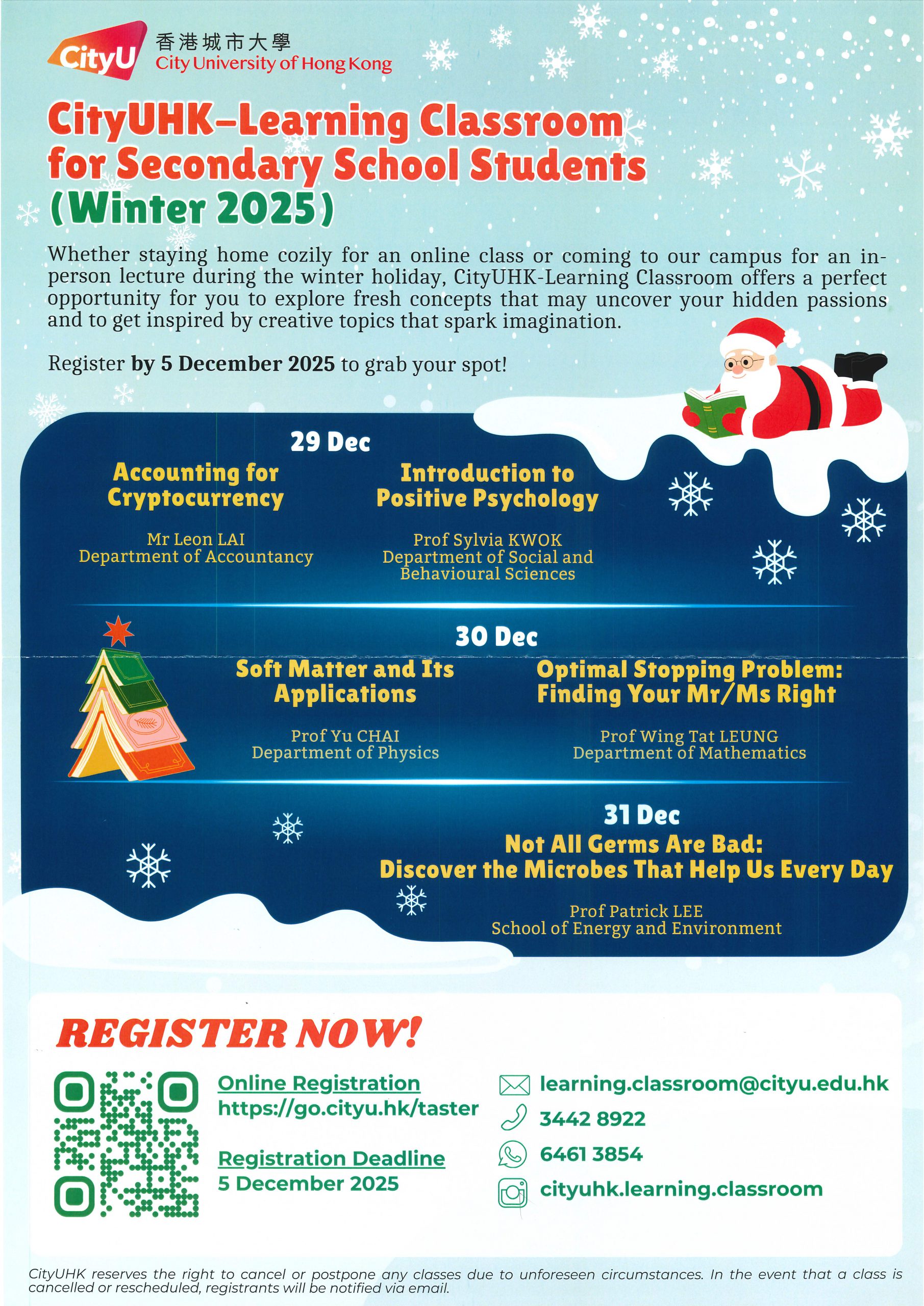 For details about each Classroom sessions please visit:https://www.cityu.edu.hk/pvdp/learning-classroom/classroom/2025-03/index.htm or scan QR code on poster