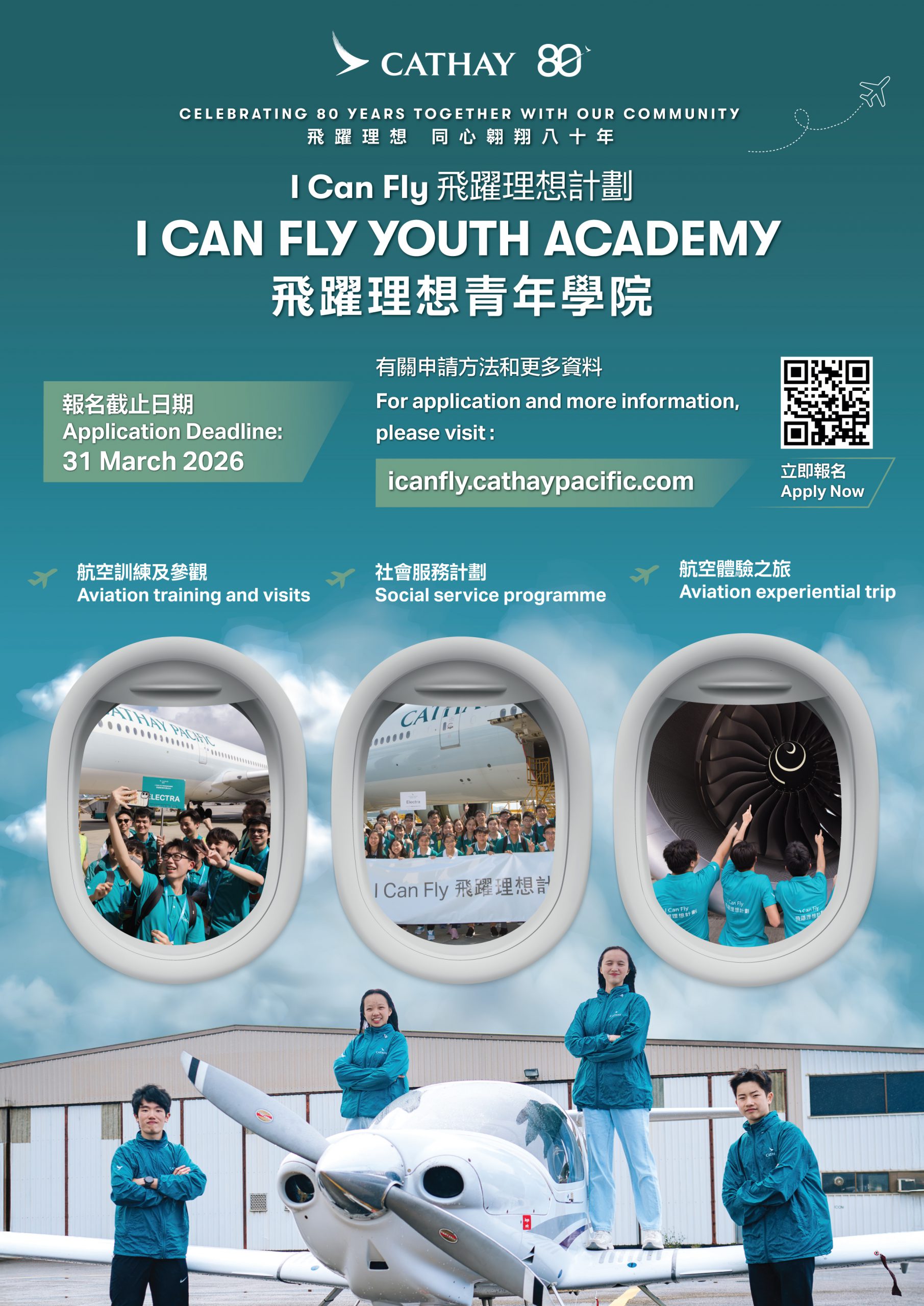 Eligible students are strongly encouraged to submit their online applications through I Can Fly Youth Academy website (icanfly.cathaypacific.com) on or before 31 March 2026 23:59 (HKT) together with school nomination form.