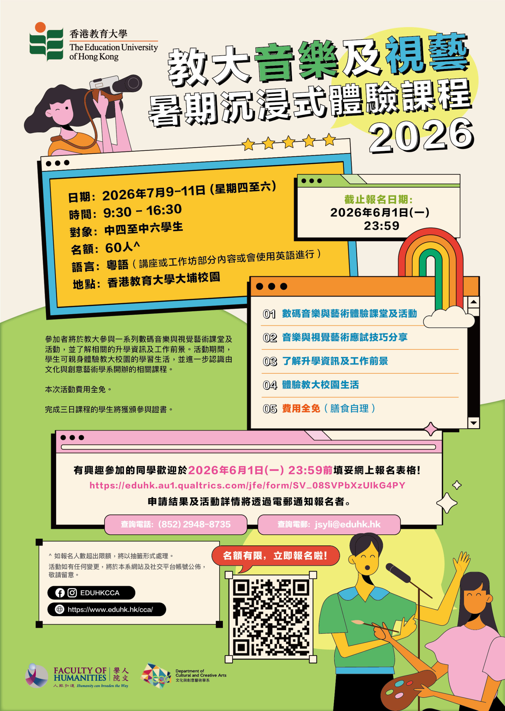 有興趣參加的同學歡迎於2026年6月1日(一)23:59前填妥網上報名表格!(https://eduhk.au1.qualtrics.com/jfe/form/SV_08SVPbXzUIkG4PY