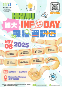 香港都會大學課程資訊日2025 日期:8.11.2025(星期六) 時間:1:00pm – 6:00pm 地點:何文田校園 活動詳情:https://admissions.hkmu.edu.hk/ug/infoday2025/ 或掃描QRcode