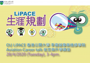 ZOOM航空業升學講座 航空業未來發展需求仍然很大,香港機場每年為數以千萬計旅客提供服務,加上連接機場及港珠澳大橋的中轉客運大樓將於2022年啟用,同年機場第3跑道落成,及至2024年3跑道系統全面投入運作,業界可謂求才若渴。另外,航空界正面臨退休潮,如果能夠把握時機入行,有很大就業及晉升空間。想了解更多有關航空業未來發展及面試技巧,請於以下連結登記: https://forms.gle/V2b7JrJT7DKRXSBT9 日期: 2020年4月28日(星期二) 時間: 下午3時至4時 講者: OU LiPACE講師 及 怡中航空 對象: 應屆DSE考生及中學生涯規劃科老師
