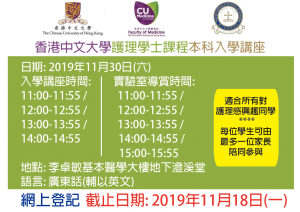 日期: 2019年11月30日(六) 入學講座時間: 11:00-11:55 / 12:00-12:55 / 13:00-13:55 / 14:00-14:55
