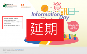官方網站:https://www.eduhk.hk/acadprog/infoday/ 日期: 2019年10月26日(六) 時間: 9 am – 5 pm 地點: