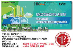 透過座談會及小組分享,讓學生了解工程業界的發展及工程師的工作。 日期: 2019年6月29日 時間: 下午1時30分至5時正 地點: 教育局九龍塘教育服務中心東座平台EP12室 費用: 全免 對象: