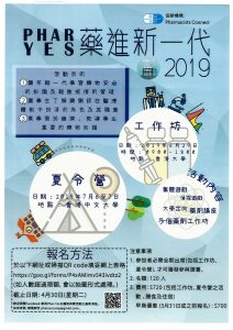藥進新一代是以中學生為對象,由香港中文大學藥劑學院暨香港大學藥理及藥劑學系協辦、與藥劑連線合辦的大型藥劑教育活動。計劃是透過一連串活動,讓新生代提早認識藥物知識,同時令學生了解藥劑行業,讓他們進一步認識藥劑師的職責,並與家人和朋友分享,從而提高大眾對藥劑師的認識和了解。藥進新一代活動詳情如下: 目的: 1. 讓年輕一代學習藥物安全的知識及輕微疾病的管理 2. 讓學生了解藥劑師在醫療體制中扮演的角色及其職責 3. 傳遞健康生活的資訊,如遠離毒品、煙草及酒精飲品 4.