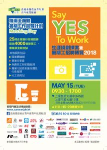 每年暑假均有大量應屆會考生尋找暑期工,為了協助他們走進工作世界,爭取工作經驗,本會自2007年開始在每年5月舉辦Say YES To Work青年就業暨暑期工招聘博覽,每年均吸引數以千計的青年朋友參與,反應熱烈。此外,計劃除了滿足青年人在就業上的需要外,更吸引傳媒廣泛報導,引起社會大眾對青年就業的關注。 如欲瀏覽詳請,請到http://summerjob.hk/