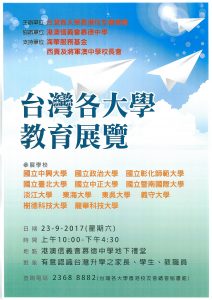 日期: 2017年9月23日(六) 時間: 上午10:00-下午4:30 地點: 港澳信義會慕德中學地下學堂 對象: 有意認識台灣升學之家長、學生、教職員 查詢電話: 2368