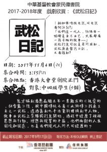 《武松日記》 潘惠森奇招再出 李鎮洲紮馬演繹 合謀公開打虎英雄的絕密日記 日期: 2017年11月4日(星期六) 集合時間: 2:15 PM