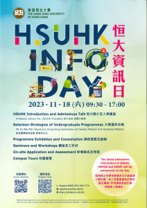 香港恒生大學將於2023年11月18日 (星期六) 上午9時30分至下午5時於沙田校園舉辦「恒大資訊日」。當日除了有課程展覽、講座、即場報名及考核等活動外,亦有設恒大簡介及入學專題講座,以加強同學對恒大及其大學選科的認識。 以下為當日活動的簡介: 展覽及諮詢 : 課程展覽 入學諮詢 (即場報名及考核和直接入學計劃) 學生生活巡禮