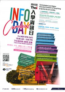 香港高等教育科技學院 (Thei) 將會於2023年11月3-4日,於THEi高科院(柴灣)校園舉行入學資訊日,屆時高科院校園將會開放予各學校、家長、團隊及公眾人士參與,並會舉辦各種精彩活動,如: 六大範疇課程講座及入學講座 業界代表分享會: 香港工程師學會和香港工業總會 互動教學館 – 如模擬駕駛體驗和VR學習遊戲 時裝盛宴SHOW
