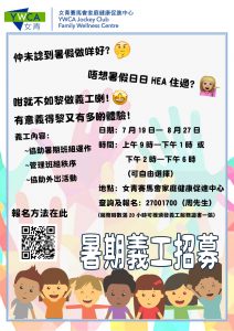 女青賽馬會家庭健康促進中心 2021暑期義工招募