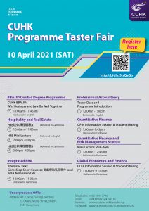 In the upcoming CUHK Programme Taster on 10 April 2021