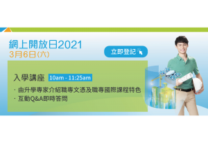 職專文憑(DVE)及職專國際課程(VB)為中三至中五同學提供靈活升學及就業出路,21/22學年課程現正接受報名,3月11日中午前報名的同學將獲安排於3月面試,網上報名連結:https://admission.vtc.edu.hk/mobileform。 同學及家長亦可參加本周六(3月6日)青年學院舉辦的「網上開放日」,活動設多場入學及課程講座,有關詳情及網上登記請登上www.yc.edu.hk/openday。 同學及家長亦可按以下連結,了解DVE畢業生及VB同學的學習經歷及升學出路: DVE課程: 升學就業向專業路出發,條條大路通羅馬 VB課程: 接通海外及本地升學路,愉快學習發揮個人興趣潛能 如有查詢,歡迎致電2748 8555 (職專文憑)或4647 9005(職專國際課程)與青年學院聯絡。