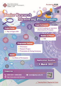 對象: 中六學生 Target: S6 Students 遞交期限:2021年3月19日 Submission deadline: 19 Mar