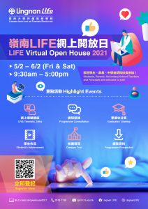 嶺南大學持續進修學院(學院)將於2021年2月5及6日(星期五及六)上午9時30分至下午5時舉辦網上開放日,分享副學士、高級文憑、文憑及毅進文憑最新入學及課程資訊,誠邀 貴校校長、老師、學生及家長參與。 開放日活動豐富,設有11場實時直播的網上專題講座,涵蓋人文學科、商學及社會科學等不同範疇和專業領域的最新發展及出路,包括深受歡迎的幼兒教育、運動及體適能等。講座由學院導師及業內專業人士主講,即時與參加者互動對話。 其中一場《中六生升學出路》是為中學校長及升輔組老師而設,介紹中六畢業生的多元升學途徑及解答升學疑問,學院同學屆時亦會分享學習點滴。詳情請瀏覽>>網上專題講座時間表<<,或瀏覽life.ln.edu.hk/openhouse2021。請預先於網上報名。 開放日其他精彩活動包括網上課程諮詢、畢業生分享、學生作品分享及校園導賞,並提供最新課程資訊供下載。