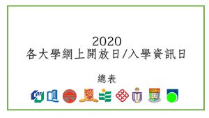 資訊日日期 大學 電話 相關網頁 2020年10月10日 香港中文大學 (CUHK) 3943 8951