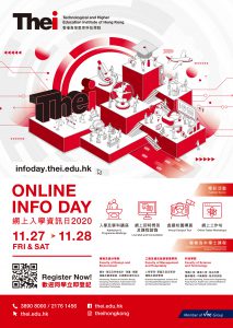 官方網頁:https://www.thei.edu.hk/admissions/infoday 日期 2020年11月27及28日 (五、六) 時間 上午11時30分 至 下午5時 地點 網上進行