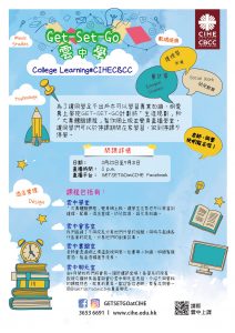 因為受到疫情影響,全港學校至今仍然未能恢復面授課堂,以保障學生的健康。然而,明愛專上學院沒有忽略學生的學習需要,有見及此,為了讓同學足不出戶亦可以認識不同專業和行業,為日後升學及就業作出充分準備,Get-Set-Go計劃於3月至5月期間,將「生涯規劃」和「大專體驗課程」製作網上版並變身直播學堂,讓中學生可以在停課期間在家學習,做到停課不停學。Get-Set-Go雲中學 – 線上課包括: 雲中學堂:「大專體驗課程」變身網上版,讓學生在家中可以學習不同學科範疇的知識,如:護理、配藥、人工智能、數碼娛樂科技、酒店管理、幼兒教育、社會工作、心理學、設計、語文、翻譯及哲學等。 雲中會客室:明愛專上學院及明愛白英奇專業學校的校友及學生會透過網上平台,分享他們升學的經驗;同時亦邀請各行各業校友及成功創業人士,分享他們的上游故事。 雲中實驗室:教授、講師親身講解冷知識,如藥物認識、調酒、五星級舖床技巧、燈光、攝影、音樂混音等。 雲中聊天室:由4月開始將會有一個新環節登場!各學系的院長、教授及講師等每星期會於雲中聊天室亮相,介紹不同學科的課程特色,就業前景等。歡迎各位老師、家長及同學一同到GETSETGOatCIHE專頁聊天。 開課日期:2020年3月23日至5月31日 直播時間:3 p.m.